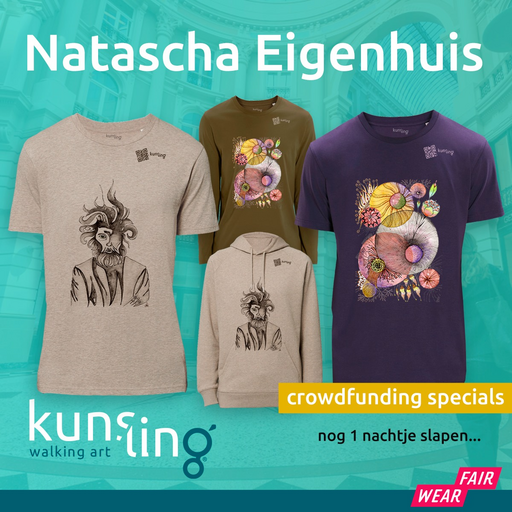 Ik ben verbonden geweest aan het mooie kledingmerk Kunsling. Een sociale onderneming die het werk van kunstenaars op kleding drukte om kunst toegankelijker te maken voor iedereen. 'Walking Art' was de slogan. Een prachtig initiatief dat tevens een deel van de opbrengst weer teruggaf aan de kunstenaar.